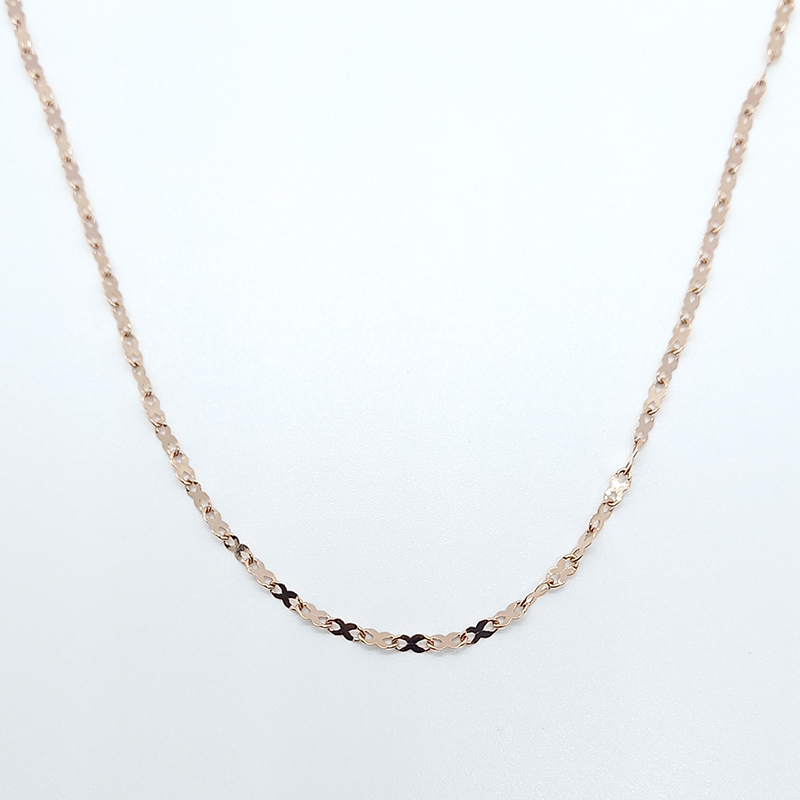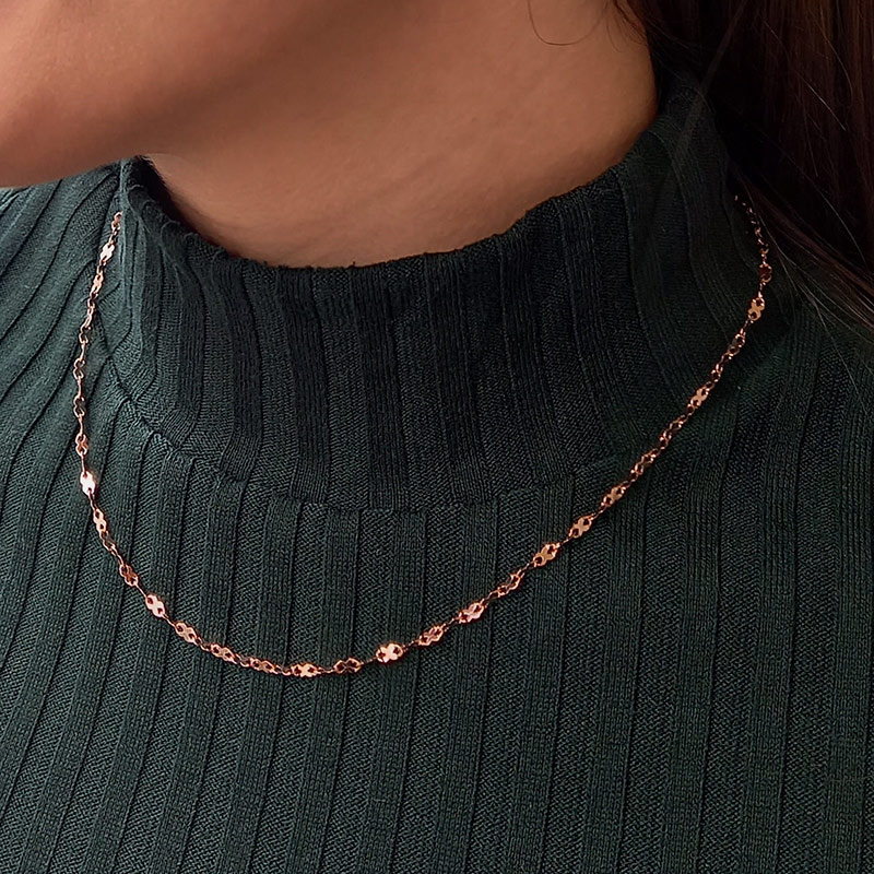 Κολιέ από ατσάλι σε ροζ χρυσό χρώμα, σε αλυσίδα μήκους 47 cm.