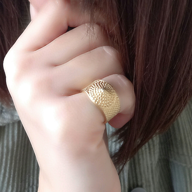 Δαχτυλίδι επιχρυσωμένου ορείχαλκου, chevalier, σφυρήλατο, το οποίο προσαρμόζεται στο μέγεθος του δακτύλου.