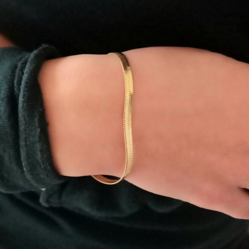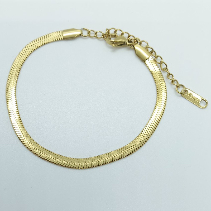 Βραχιόλι χεριού ατσάλινο, χρυσού χρώματος, σε αλυσίδα μήκους 24 cm και πάχους 0,3 cm, κλασσικό σχέδιο σε μοτίφ φιδιού.