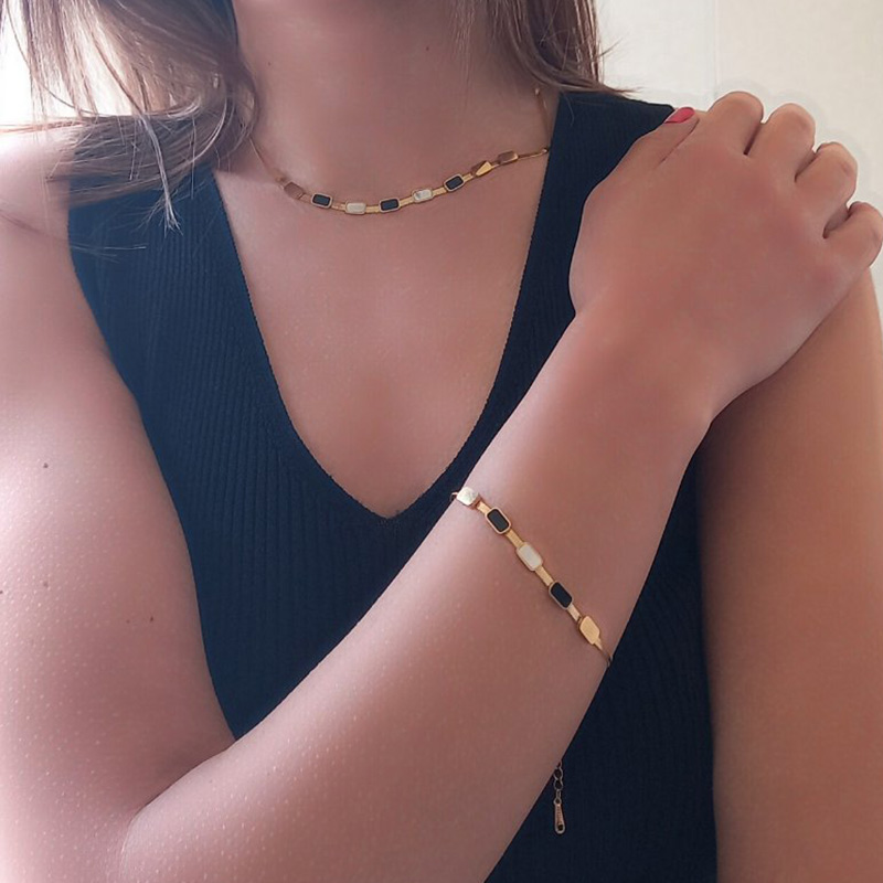 Set από κολιέ και βραχιόλι χεριού, σε μοτίφ αλυσίδας φιδιού, διακοσμημένη με στοιχεία λευκού, μαύρου φίλντισι.