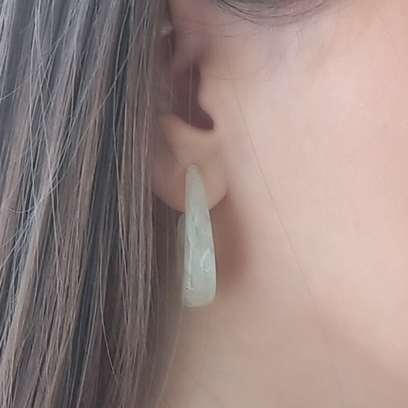 Σκουλαρίκια κρίκοι κοκκάλινοι με ατσάλινο επίχρυσο “καρφάκι”, σε μπεζ απόχρωση, μήκους 3 cm.