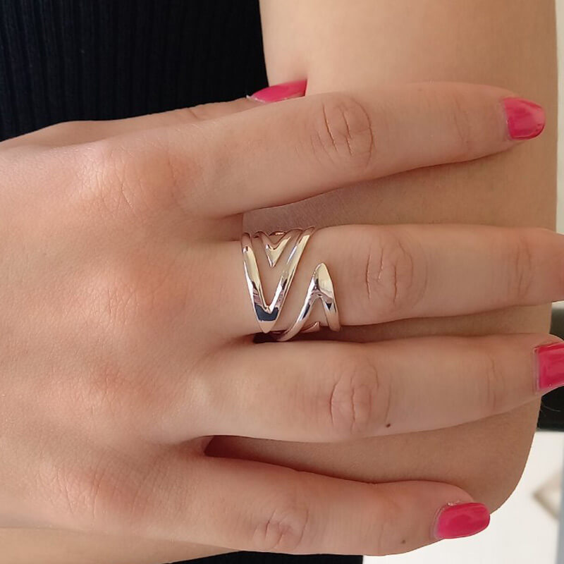 Δαχτυλίδι ατσάλινο ασημί χρώματος, με γραμμικό σχέδιο, συνολικού πάχους 1,6 cm. Προσαρμόζεται στο μέγεθος του δακτύλου.