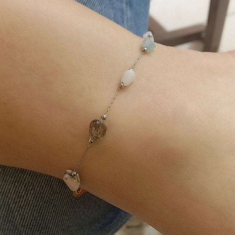 Βραχιόλι ποδιού από ατσάλι, ασημί χρώματος, συνολικού μήκους 27 cm, διακοσμημένη με πέτρες σε συνδυασμό χρωμάτων.