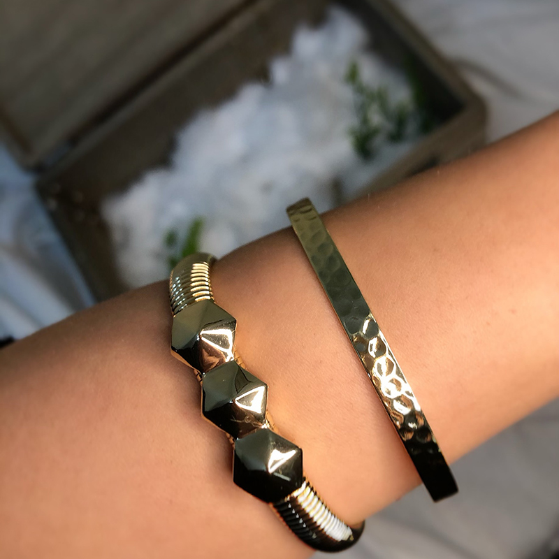 Βραχιόλι χεριού επιχρυσωμένου ορείχαλκου, σε μοτίφ φιδιού με τρία ομοιόμορφα διακοσμητικά στοιχεία, χωρίς άνοιγμα με διάμετρο 7cm.