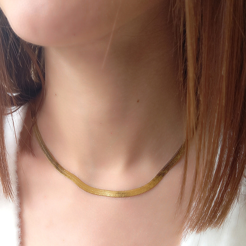 Κολιέ ατσάλινο, επιχρυσωμένο, σε αλυσίδα μήκους 46 cm και πάχους 0,4 cm, σε κλασσικό μοτίφ φιδιού.