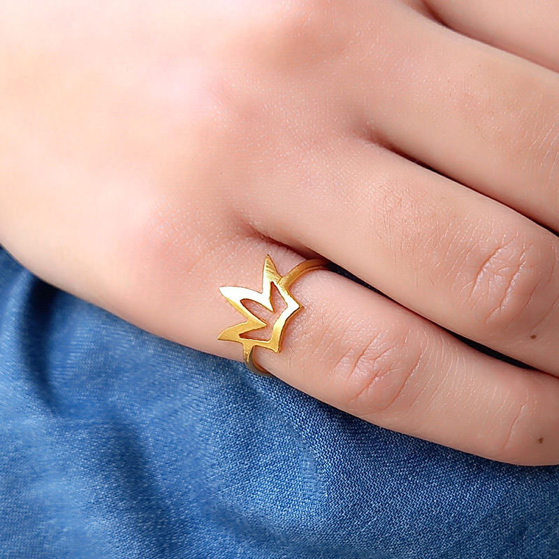 Δαχτυλίδι επιχρυσωμένου ορείχαλκου, chevalier, με σχέδιο κορώνας, το οποίο προσαρμόζεται στο μέγεθος του δακτύλου.