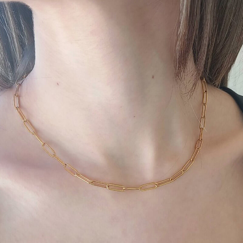Κολιέ από ατσάλι, χρυσού χρώματος, κλασσικού μοτίφ αλυσίδα, συνολικού μήκους 48 cm.