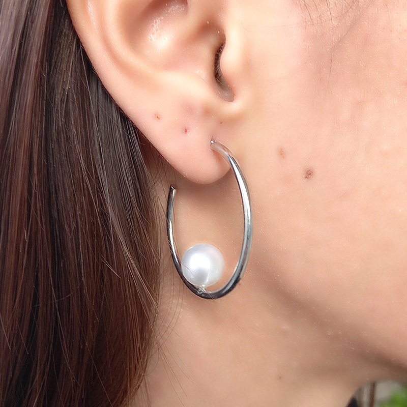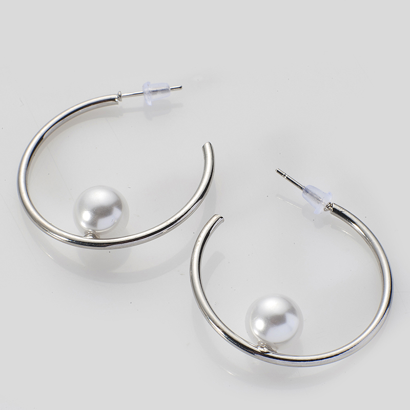 Σκουλαρίκια επαργυρωμένου ορείχαλκου, κλασσικού κρίκου, διαμέτρου 3,2cm, διακοσμημένα με λευκή πέρλα.