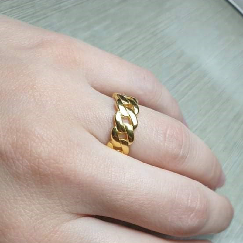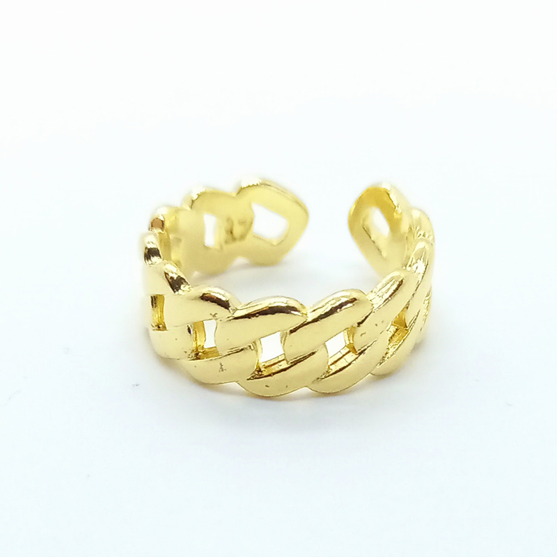 Δαχτυλίδι επιχρυσωμένου ορείχαλκου, σε μοτίφ κλασικής αλυσίδας, το οποίο προσαρμόζεται στο μέγεθος του δακτύλου.