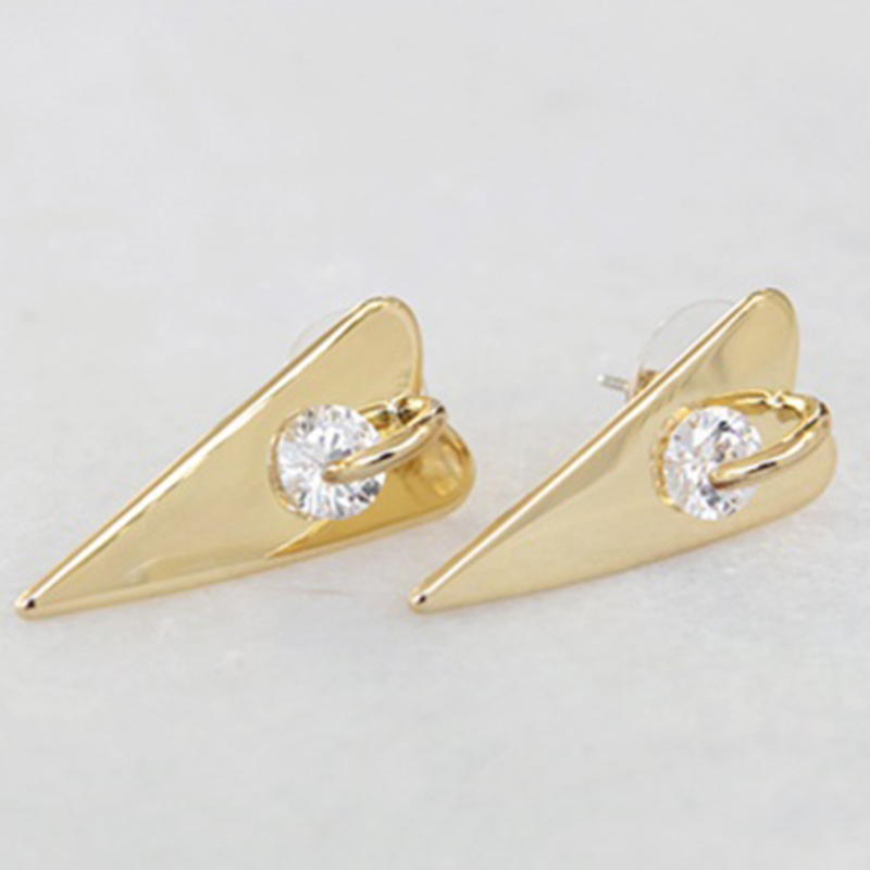Σκουλαρίκια από ατσάλι, χρώματος χρυσού σε σχήμα καρδιάς, συνολικού μήκους 2,8cm, διακοσμημένα με strass και κούμπωμα καρφάκι.
