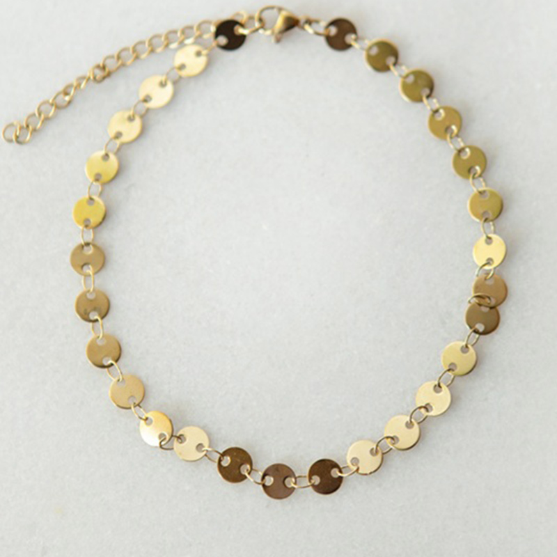 Βραχιόλι ποδιού από ατσάλι σε χρυσό χρώμα, με προέκταση συνολικού μήκους 28cm σε κλασικό μοτίφ με διακόσμηση μικρών φλουριών