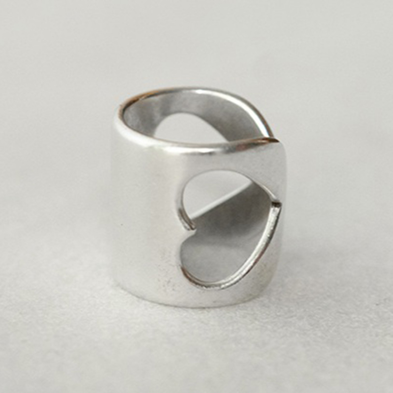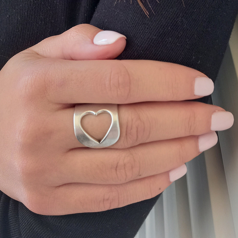Δαχτυλίδι επαργυρωμένου ορείχαλκου, διακοσμημένο με σχέδιο διάτρητων καρδιών, το οποίο προσαρμόζεται στο μέγεθος του δακτύλου.