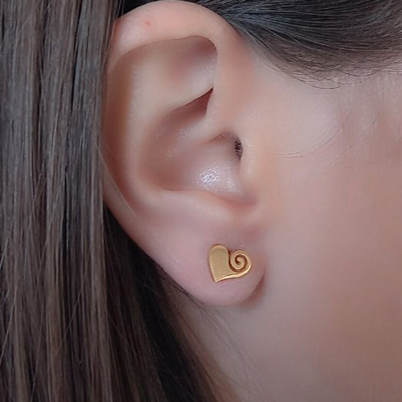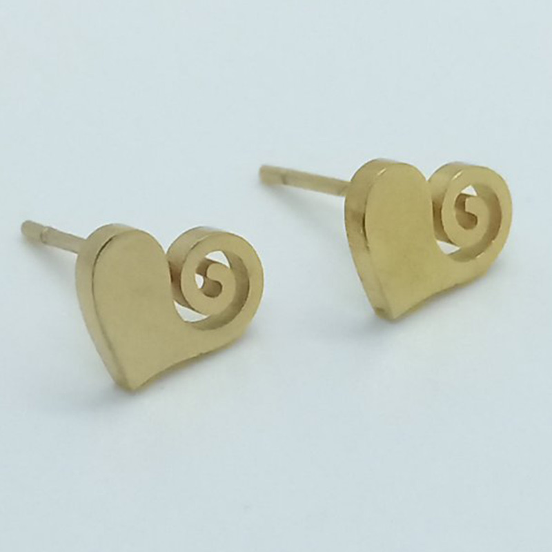 Σκουλαρίκια από ατσάλι χρυσού χρώματος, σε σχήμα καρδιάς, διαμέτρου 0,8 cm. Διαθέτουν κούμπωμα “καρφάκι”.