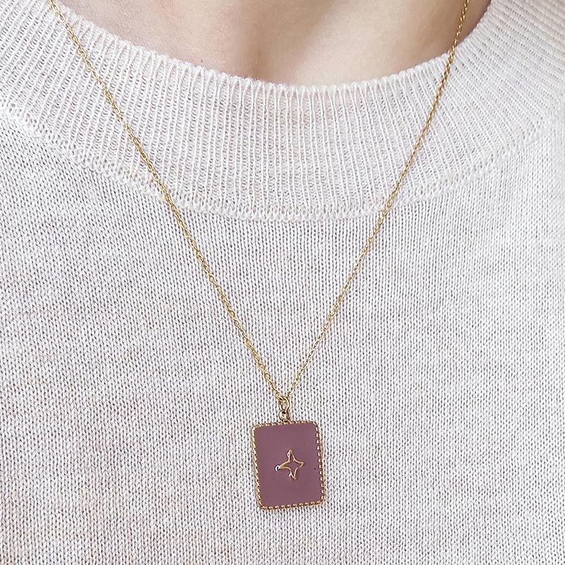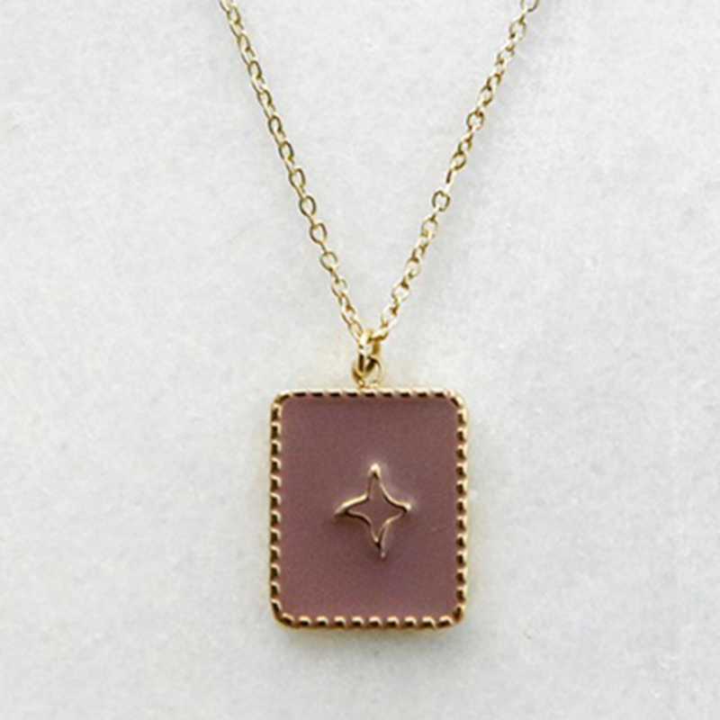 Κολιέ από ατσάλι, με αλυσίδα μήκους 51cm χρυσού χρώματος, η οποία συγκρατεί στοιχείο ψημένου σμάλτου, “σάπιου μήλου” χρώματος με διακόσμηση ανάγλυφου αστεριού και λεπτομέρειες χρυσού χρώματος στο περίγραμμα, διαστάσεων 1,3cm x 2cm.